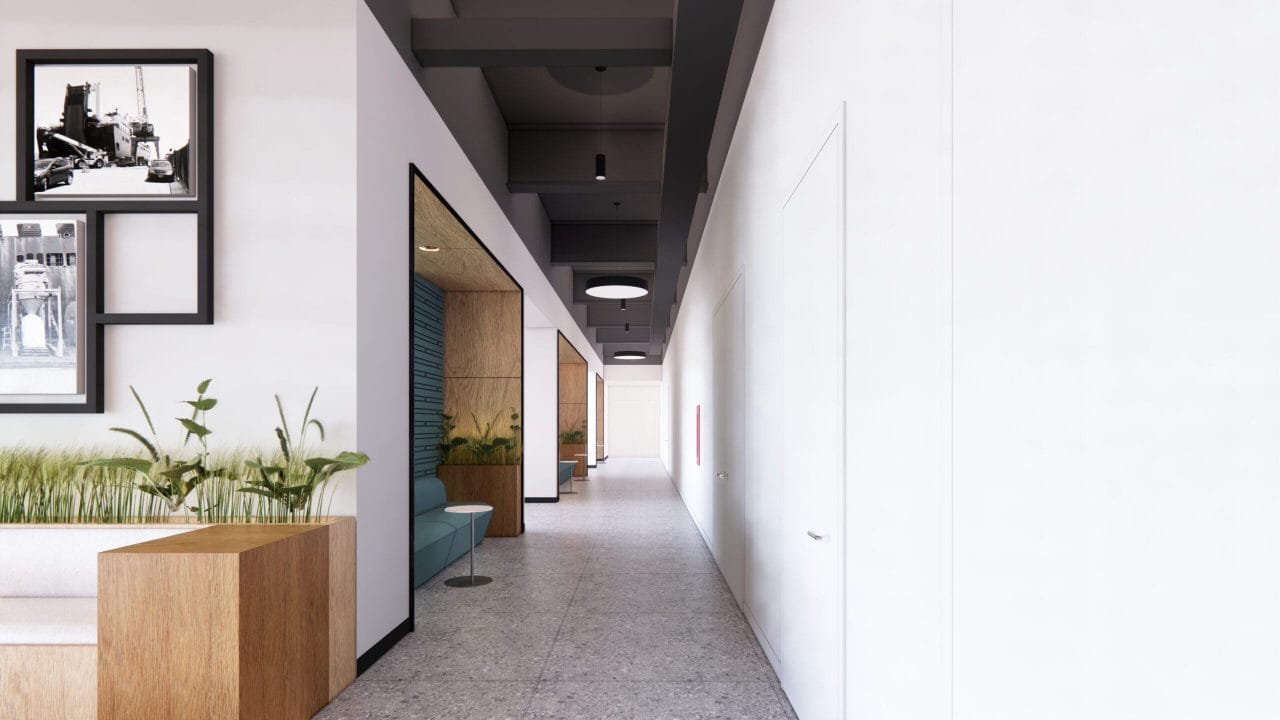The entire building is set up to deliver resiliency first, and the elevated ground floor will be the Headquarters for Boston Ship Repair; a training facility; and office space for local nonprofit Save The Harbor/Save The Bay. It will also house a restaurant and pedestrian-friendly public spaces, while a landscaped plaza serves as a seasonal outdoor gathering space.
