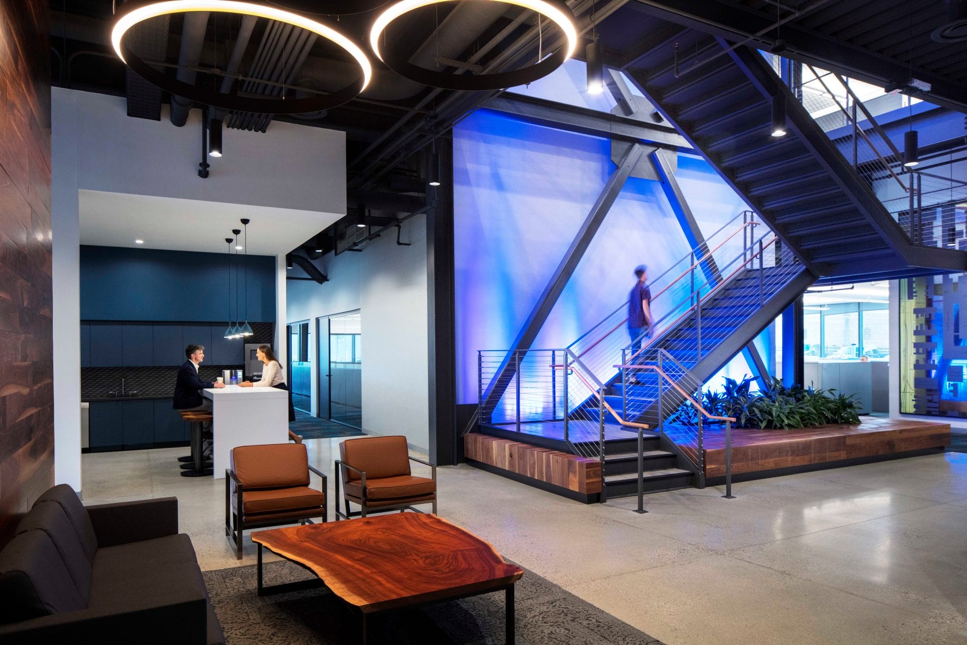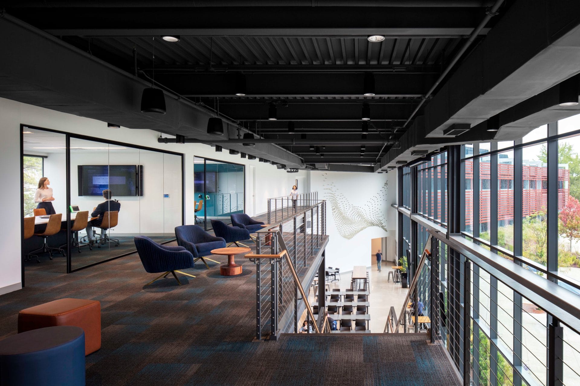 The headquarters includes open office, kitchen and corporate cafeteria, training and conference center, “all hands” meeting space and other building amenity zones.