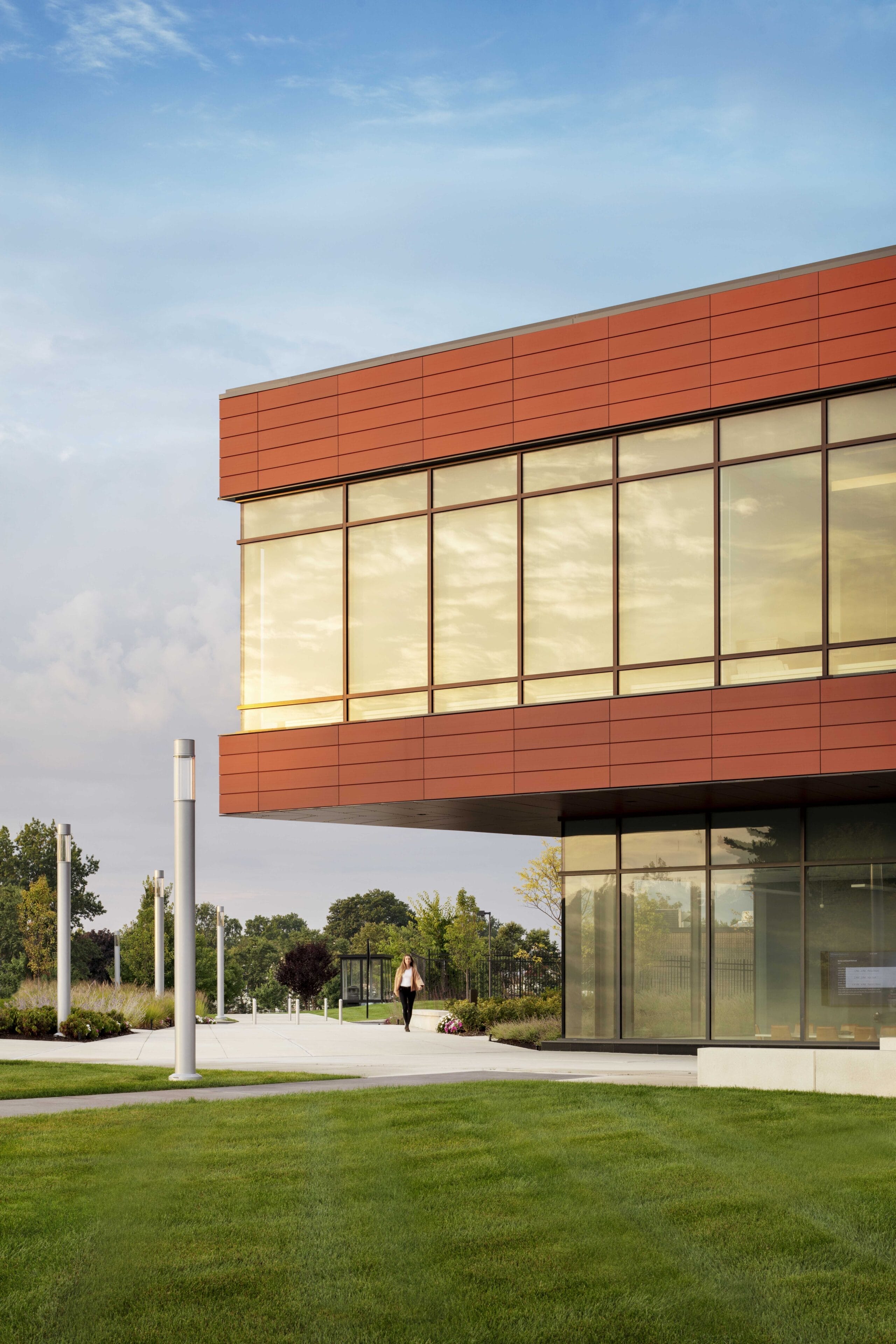 A multi-story “link” connects the new space to the existing building, and additional site improvements create an active, unique campus setting in Lowell, MA.