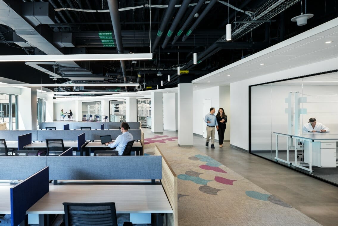the state-of-the-art laboratories. As they flow into open floor plan offices equipped with flexible